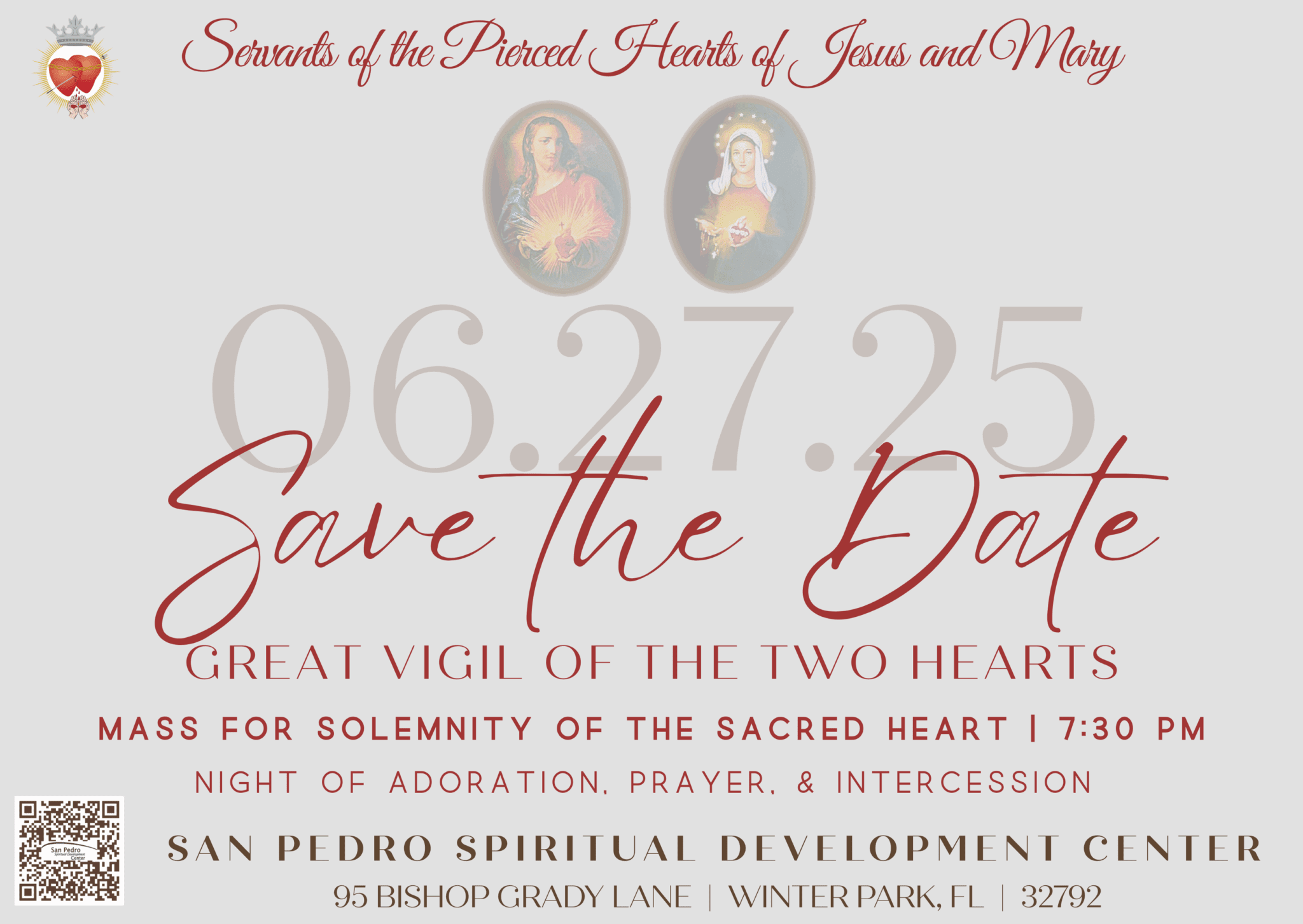 Join the Servants of the Pierced Heart of Jesus and Mary for an intercessory prayer group dedicated to healing prayer. We will pray the Rosary, sing Marian hymns, and offer prayers for the sick. No registration required. San Pedro’s Mary, Mother of God Chapel, 7:30 p.m. – 8:30 p.m.