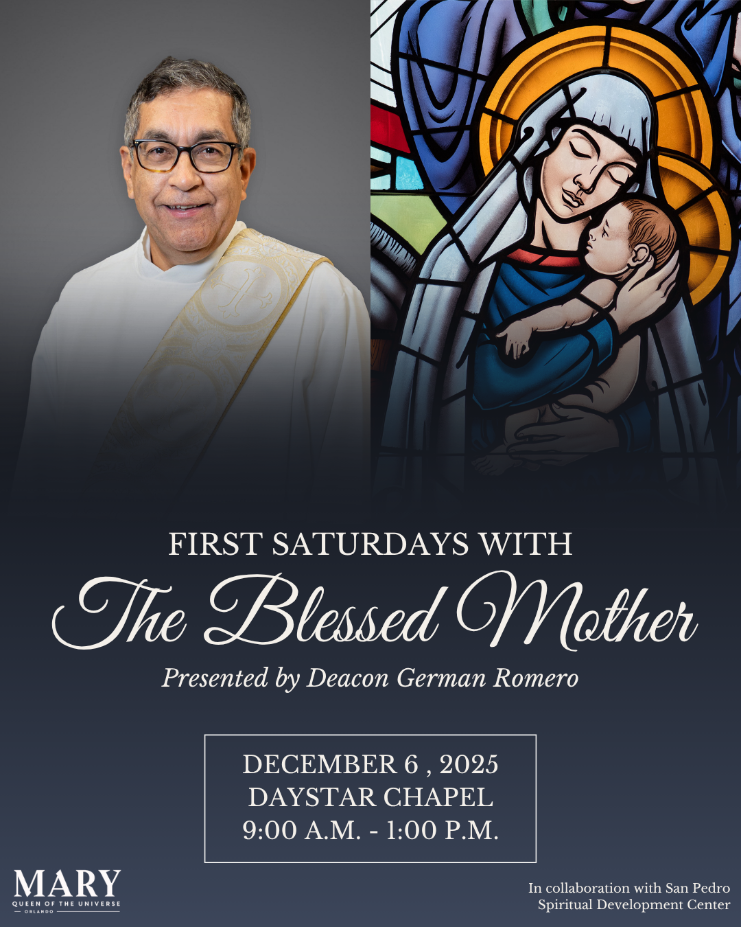 Join us every first Saturday for a presentation on the Blessed Mother at 9 a.m.; confession from 10:30 a.m.-11:45 a.m.; Rosary at 11:15 a.m.; Mass at noon. This month’s speaker is Deacon German Romero.