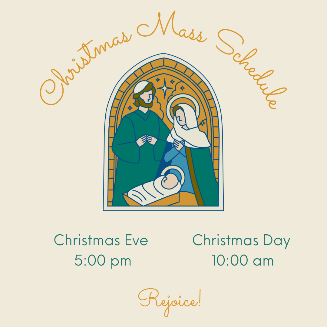 Please join us at 10:00 a.m. for our Christmas Day Mass! There will be no 7:30 a.m. Mass on this day.