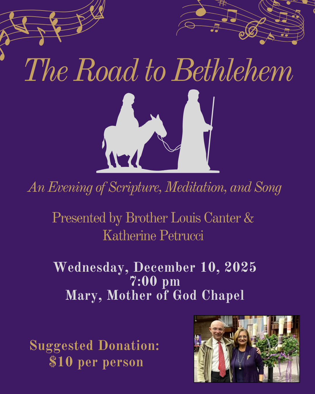 Join us Wednesday, December 10, from 7:00 p.m. – 8:30 p.m. for The Road to Bethlehem: An Evening of Scripture, Meditation and Song with Louis Canter, OEF, and Katherine Petrucci.