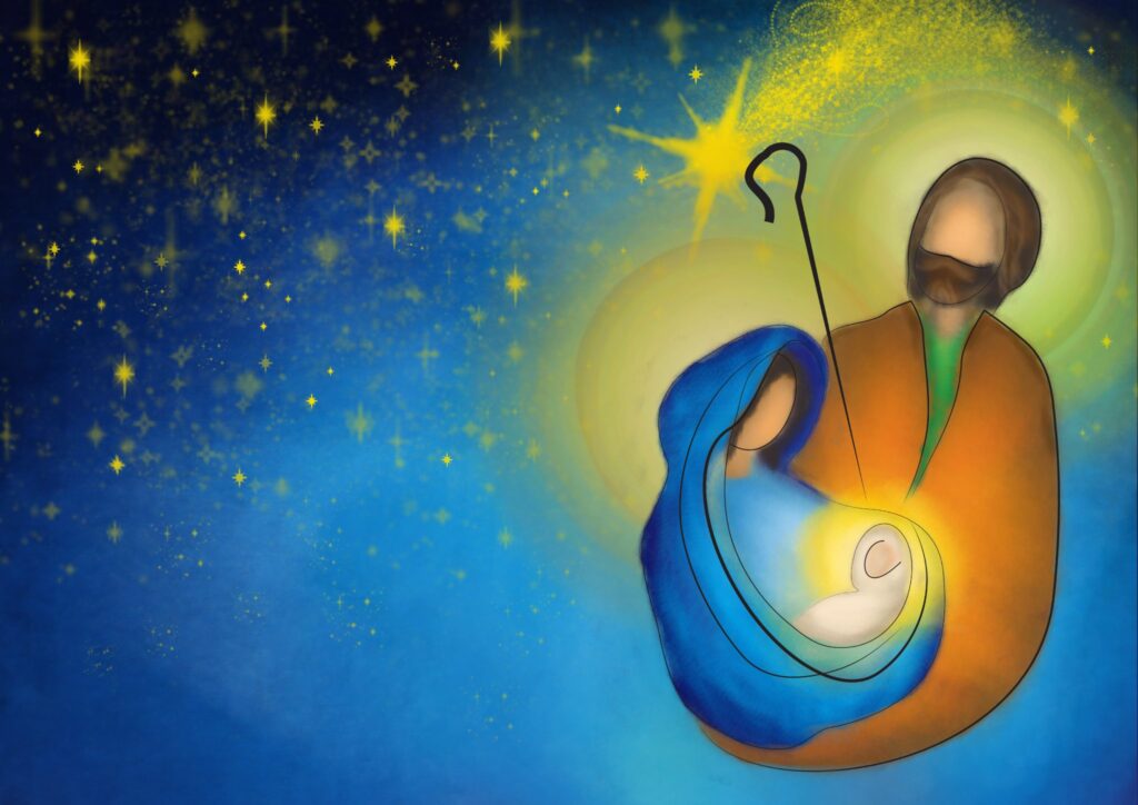 Previous Image Next Image Christmas religious nativity scene, Holy family abstract artistic watercolor illustration Mary Joseph and Jesus in the starry night