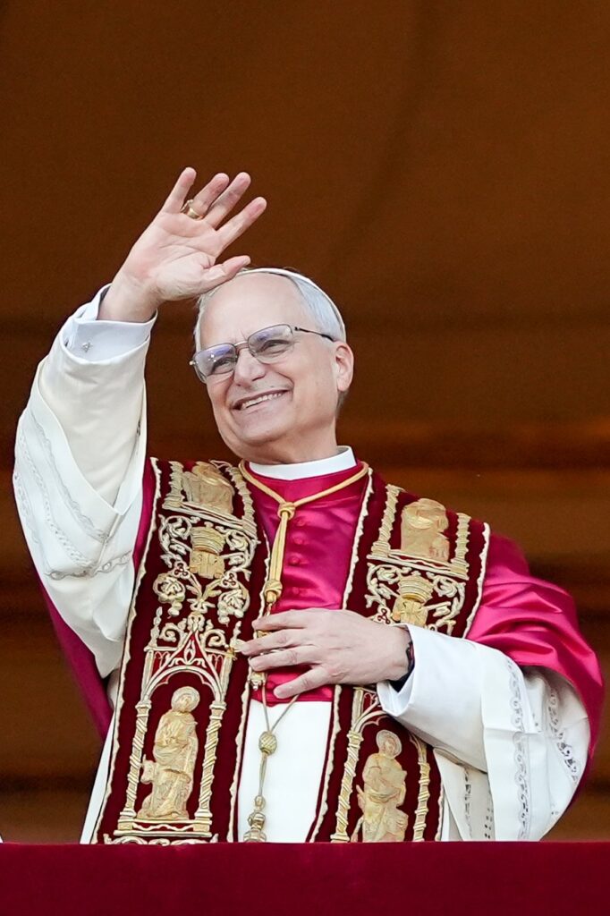 Previous Image Next Image POPE LEO XIV Pope Leo XIV, the former Cardinal Robert F. Prevost, waves to the crowds in St. Peter’s Square at the Vatican after his election as pope May 8, 2025. The new pope was born in Chicago. (CNS photo/Lola Gomez)